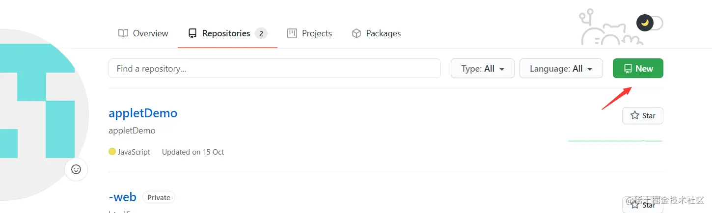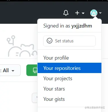 - 登录github官网,登录成功后点击小头像选择Your repositories