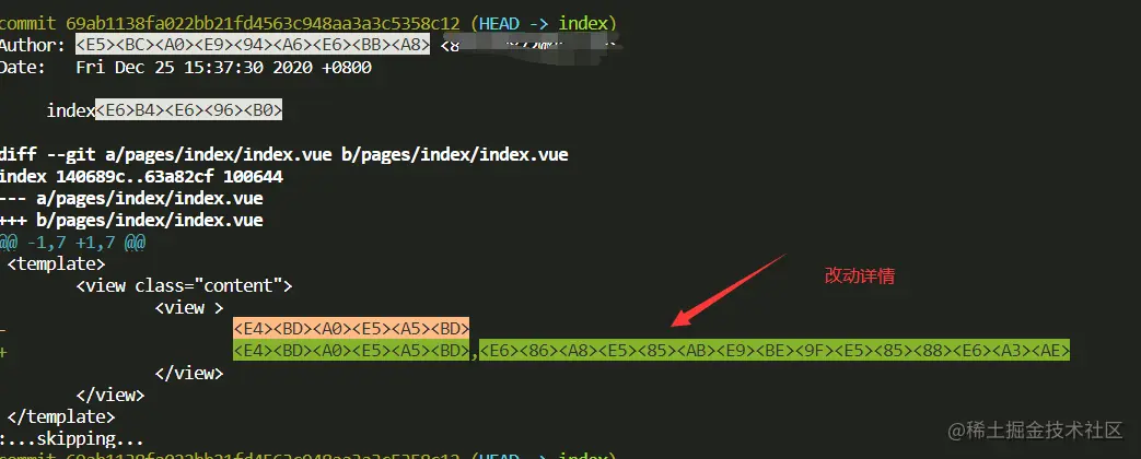git show commit的id //查看文件提交详情 //例如 git show 69ab1138fa022bb21fd4563c948aa3a3c5358c12