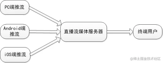 对于这部分,用行业内的术语来讲,就是直播流媒体服务器系统。这个系统主要实现直播数据流的转发功能。如下图所示: