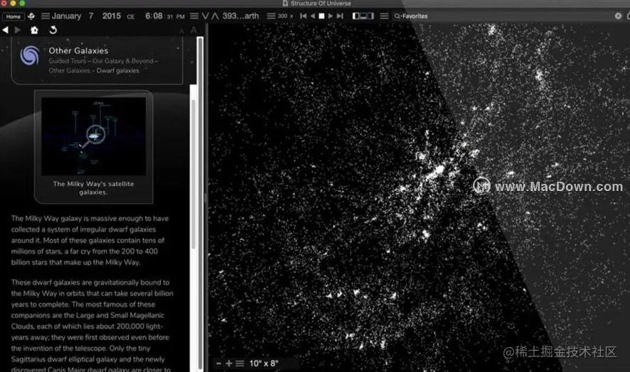 世界最强的天文软件。它可以模拟公元前99999年到公元99999年的1000000光年内人类所能观察到的所有天文现象。它可不是一般的天文教学软件,只有一点文字,图片或动画而以,而是实时模拟软件。