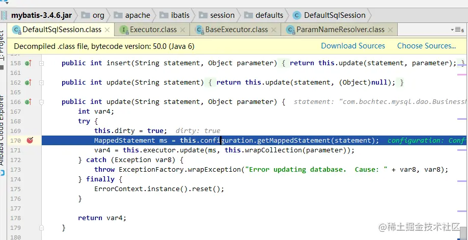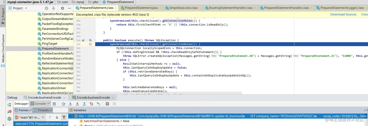 这里已经进入mysql-connect-java包了,单击this的view,获得拼接完成的sql,可以在navicat中执行