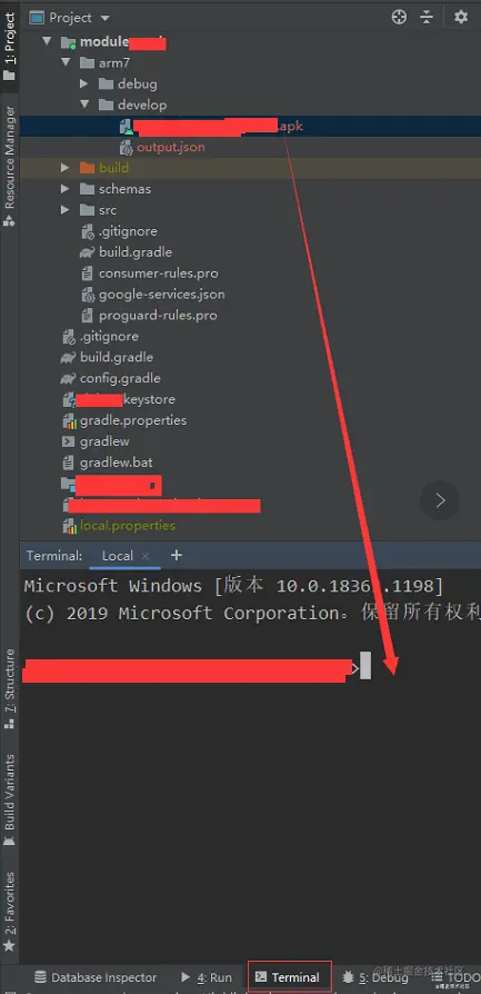 android studio 使用命令安装apk到手机上 码农果果 2020-12-25 8,067 阅读1分钟 1.打开android studio,点击Terminal 2.在android studio中将打包的apk包路径打开,如下 3.将apk拖动到terminal命令中,如下,系统会自动开启一个新的命令窗口 4.最后,输入命令,apkname.apk是你打包好的apk文件名 adb install apkname.apk