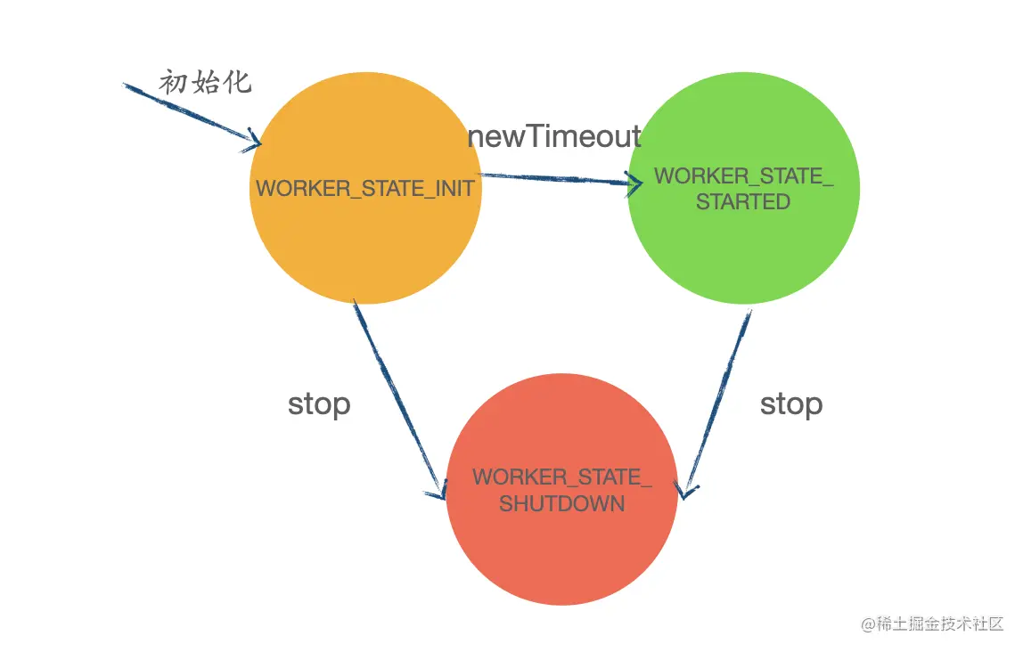 - WORKER_STATE_SHUTDOWN:终止状态,时间轮停止工作