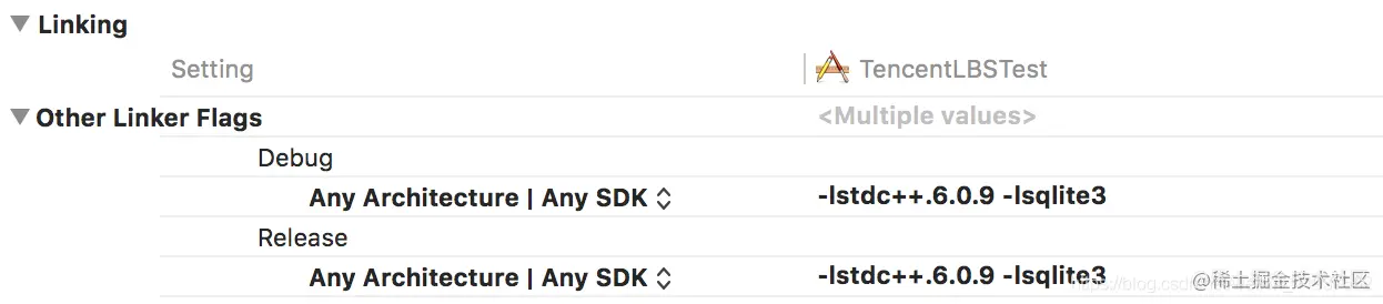 引入系统库文件:仿照上面的操作 ("Add"的时候直接在列表中查找选择 )添加系统库libz.1.2.5.tbd 在 Build Setting - Linking - Other Linker Flags 里 添加 -lstdc++.6.0.9, -lsqlite3(注意:在 Xcode9 以上,不再需要这两个库) 。