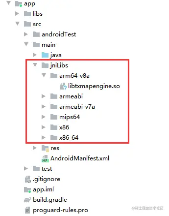 将 jniLibs 目录下的所有文件按照原目录格式,拷贝到AndroidStudio项目对应的 app/src/main/jniLibs/ 目录下。