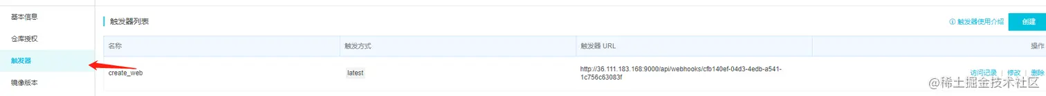 对于镜像管理我使用的是阿里云的容积镜像服务,然后创建了一个触发器,能够在进行镜像推送完成之后进行自动化的部署的触发。