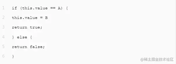CAS的实现方式其实不难。在CAS中有三个参数:内存值V、旧的预期值A、要更新的值B,当且仅当内存值V的值等于旧的预期值A时,才会将内存值V的值修改为B,否则什么也不干,是一种乐观锁。其伪代码如下: