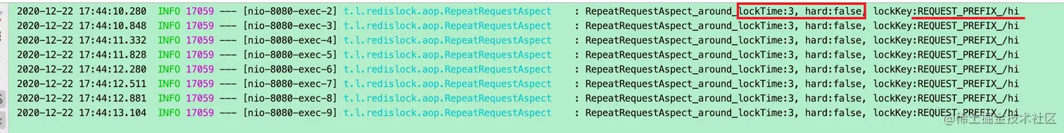 log.info("RepeatRequestAspect_around_lockTime:{}, hard:{}, lockKey:{}", lockTime, hard, lockKey);