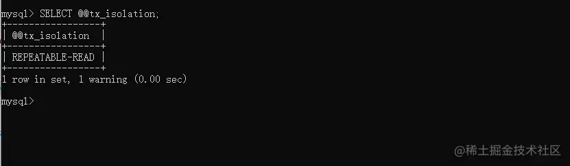 首先查看mysql默认的隔离级别是什么,默认隔离级别是 repeatable-read,两种方式都可查看
