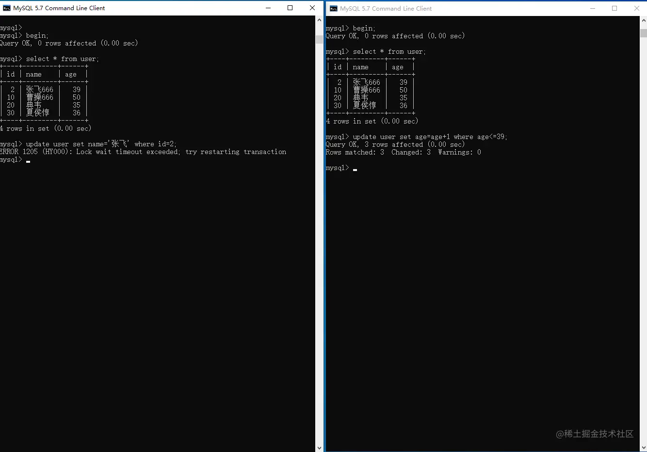 事务A,事务B同时对同一张表的同一条记录做修改,后执行的事务可能会执行失败,此时可能会发生行锁的lock情况,执行不成功。后执行的事务必须等待先执行的事务先commit或者rollback,才能对这同一条要修改的记录作出修改;