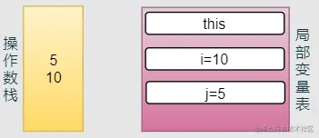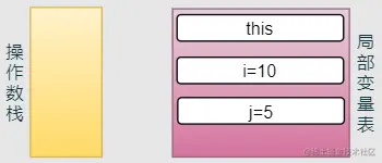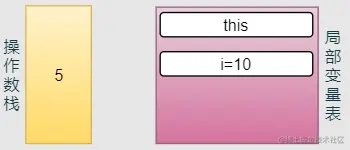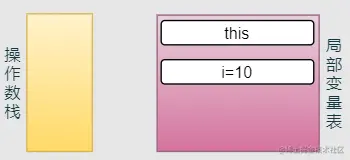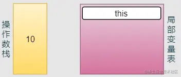 第一步,将10压入操作数栈顶,此时局部变量表中第0个位置存储的是this