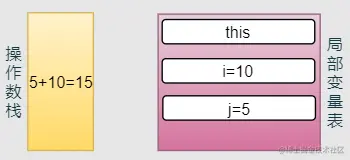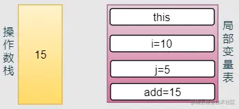 第九步,从局部变量表中获取第三个位置的变量add,也就是15,压入操作数栈顶。