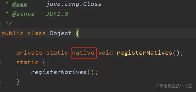 JDK类库中有许多被native关键字修饰的方法,比如Object类