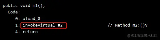 比如,我们对上面的m1方法的字节码文件进行反编译查看。在m1方法中对m2进行调用,在字节码中的指令是invokevirtual #2,其中#2就是引用地址