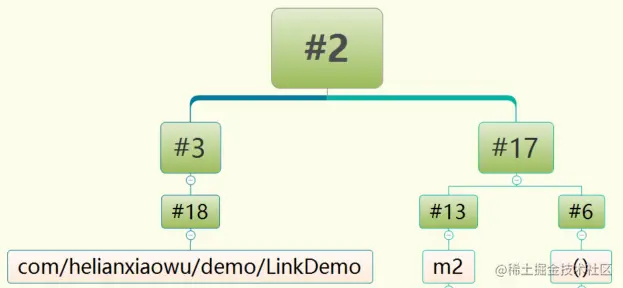 在上图中,#2还分别引用了#3和#17,动态链接区域的作用就是根据这些引用地址找到这些地址在常量池中实际对应的位置