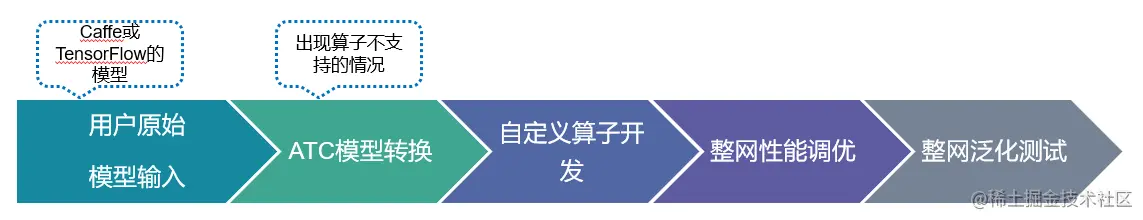 绝大多数情况下,由于昇腾AI软件栈支持绝大多数算子,开发者不需要进行自定义算子的开发,只需提供深度学习模型文件,通过离线模型生成器(OMG)转换就能够得到离线模型文件,从而进一步利用流程编排器(Matrix)生成具体的应用程序。既然如此,为什么还需要自定义算子呢?这是因为在模型转换过程中出现了算子不支持的情况,例如昇腾AI软件栈不支持模型中的算子、开发者想修改现有算子中的计算逻辑、或者开发者想自己开发算子来提高计算性能,这时就需要进行自定义算子的开发了。