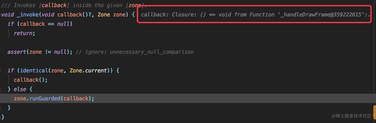 调用了_invoke方法_invoke(void callback()?, Zone zone),看下断点发现是回调参数是_handleDrawFrame()方法:
