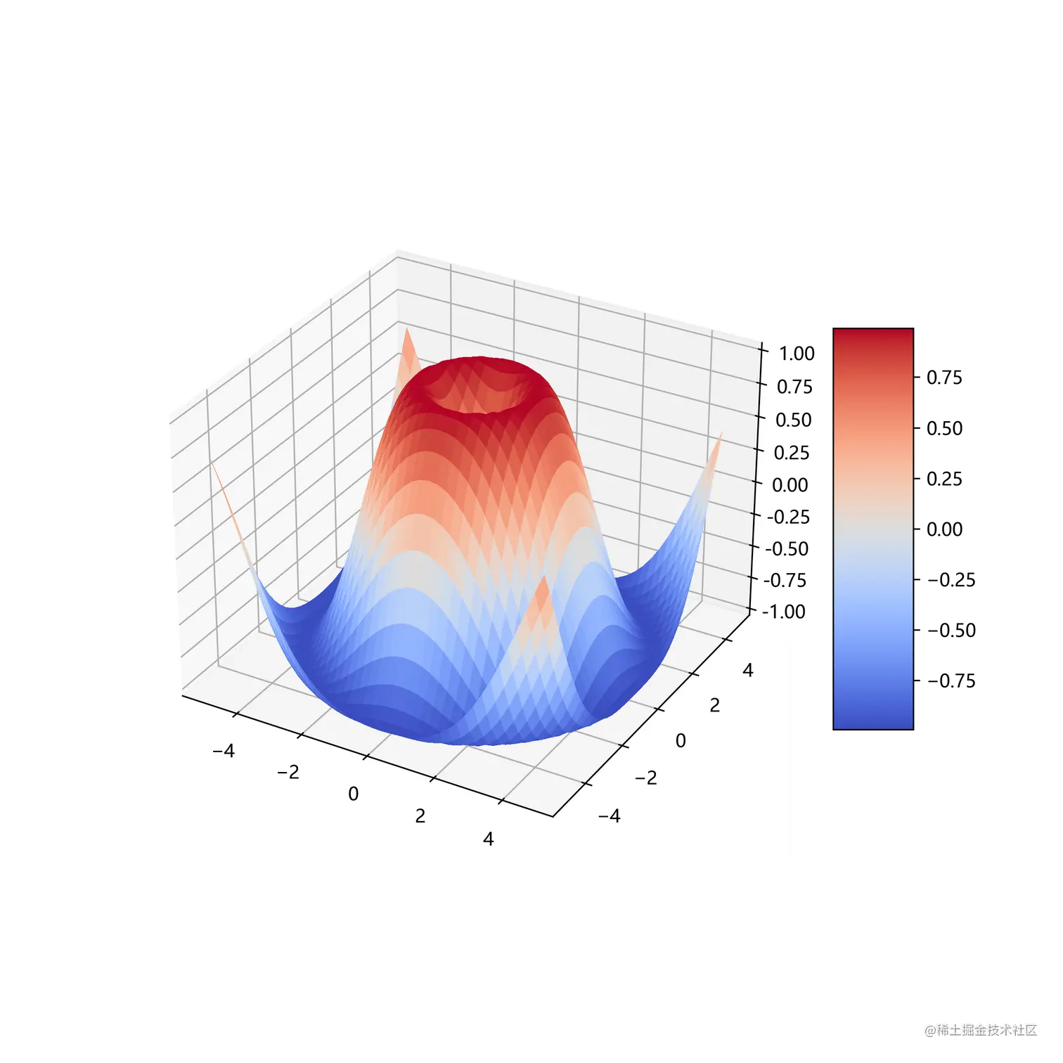 surf = ax.plot_surface(X, Y, Z, cmap=cm.coolwarm,