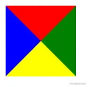 div { width: 0; height: 0; border-top: 50px solid red; border-bottom: 50px solid yellow; border-right: 50px solid green; border-left: 50px solid blue; }写出来就是以下样式