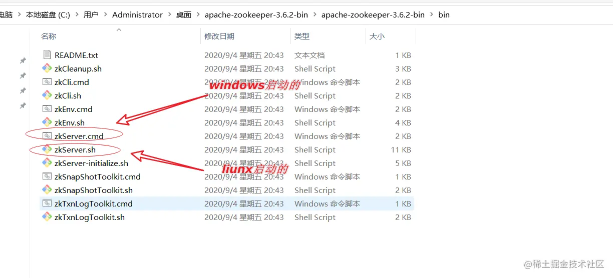 bin文件中有两个启动文件zkServer.cmd、zkServer.sh第一个是window系统中使用,其次是Linux系统中的 -