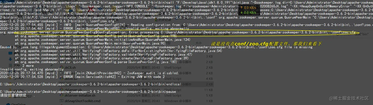 在次启动还是好的结果,报错信息是conf/zoo.cfg没有找到