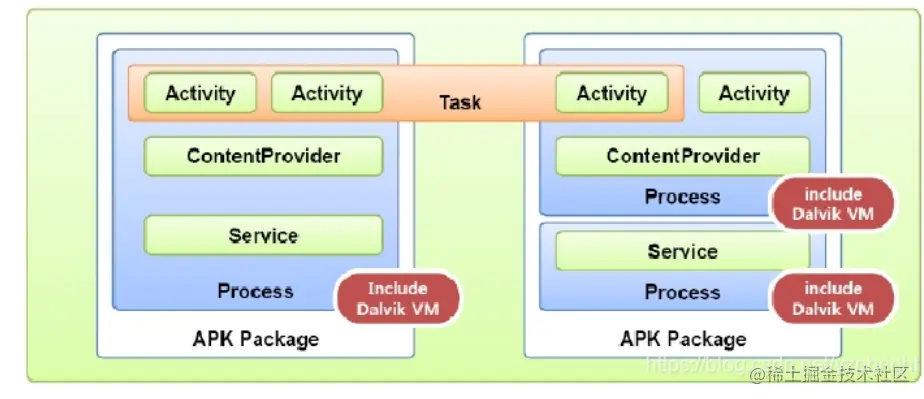 网上的图,很直观,就是一系列Activity的集合?而且task可以有多个应用的Activity,所以说task是属于整个Android操作系统的,Activty代码是属于Application。
