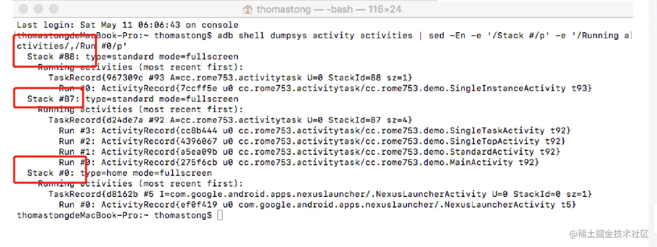 使用adb查看当前Android系统启动了哪些Tasks,以及每个Task保护哪些Actvity:
