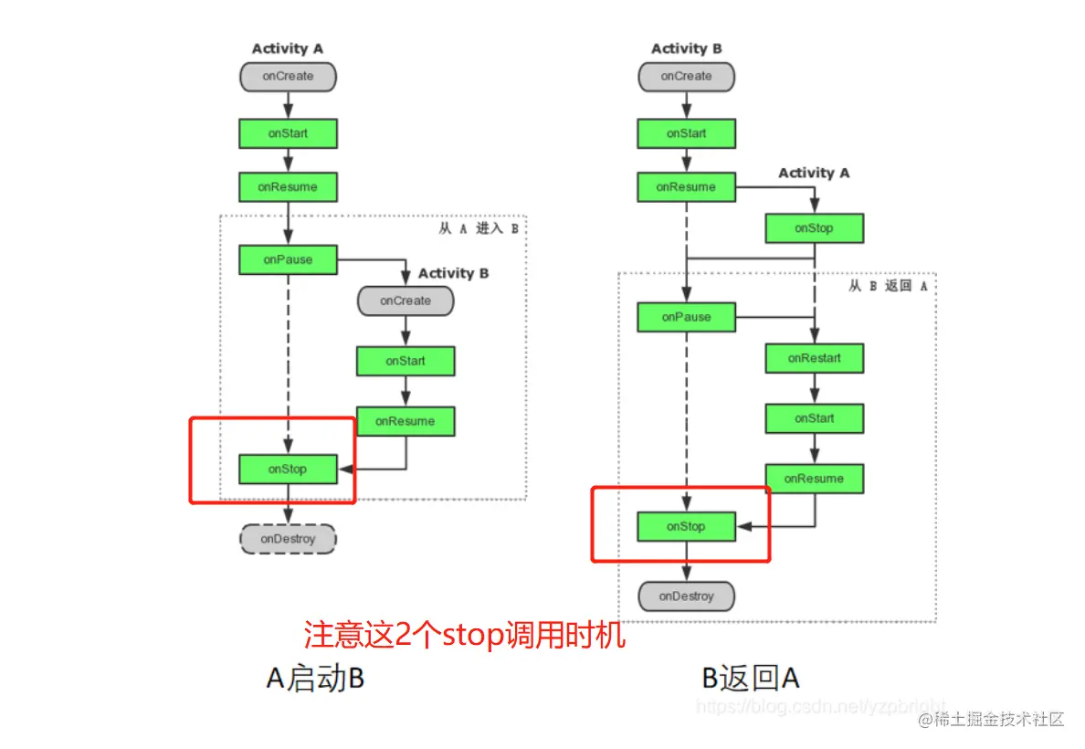 (3)新Activity并不是百分百启动成功的,启动新Activity的过程中可能crash掉,这时旧Activity的onStop方法是不会调用的。