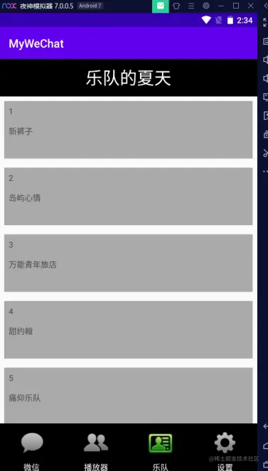 实验结果:(实验小结与结果截图) 3、功能说明与核心代码 我将利用RecyclerView实现在一个fragment上列出多个国内乐队名字。 BandFragment.java文件 import android.content.Context; import android.os.Bundle; import android.view.LayoutInflater; import android.view.View; import android.view.ViewGroup; import androidx.fragment.app.Fragment; import androidx.recyclerview.widget.LinearLayoutManager; import androidx.recyclerview.widget.RecyclerView; import java.util.ArrayList; import java.util.List;