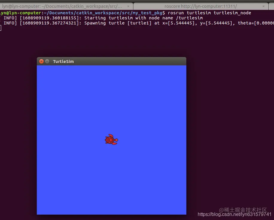 打开第二个Terminal,启动turtlesim仿真器节点(可以把小乌龟的界面长置顶)