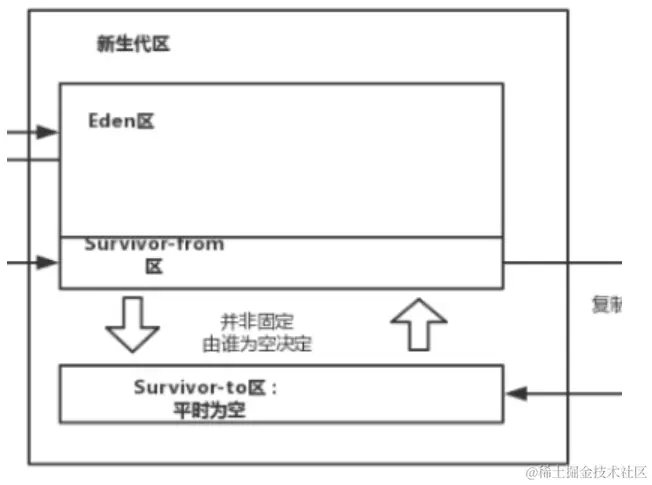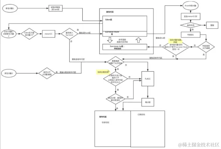 新生代、老生代以及minorGC、fullGC的发生流程如下: