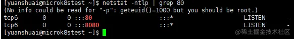 - 查看80端口是否被监听
