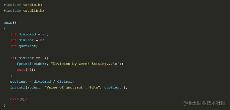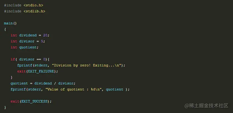 通常情况下,程序成功执行完一个操作正常退出的时候会带有值 EXIT_SUCCESS。在这里,EXIT_SUCCESS 是宏,它被定义为 0。