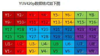 若图像处理时需要彩色图像,则需要先将nv21类型的数据转化为yuv格式,再将yuv转化为BGR彩色图像,构造yuv时的构造函数和直接构造灰度图有些不同,在YUV420中一个像素对应一个Y,一个2*2的小方块对应一个UV,对于所有YUV420图像,它们的Y值排列是完全相同的,因为只有Y的图像就是灰度图像。YUV420sp与YUV420p的数据格式它们的UV排列在原理上是完全不同的。420p它是先把U存放完后,再存放V,也就是说UV它们是连续的。而420sp它是UV、UV这样交替存放的。对于一个YUV420在内存中存放的大小: