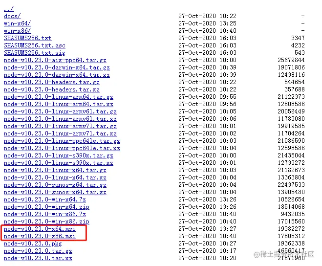 上图中,选择后缀为 msi 的安装程序,x64 是 64 位,x86 是 32 位,根据自己电脑系统选择。