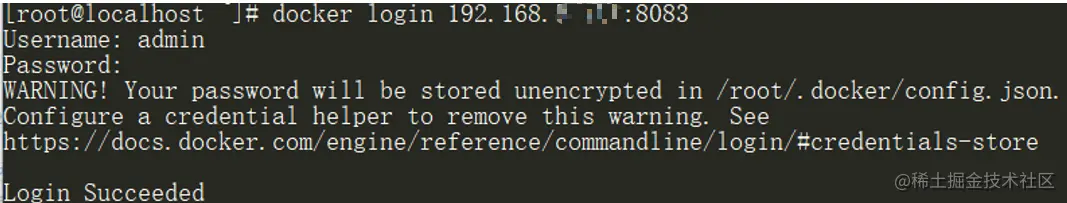 设置成功后,就可以使用 docker login 命令登录Docker 私有镜像库: