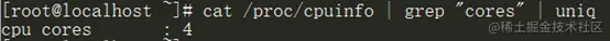 cat /proc/cpuinfo | grep "cores" | uniq