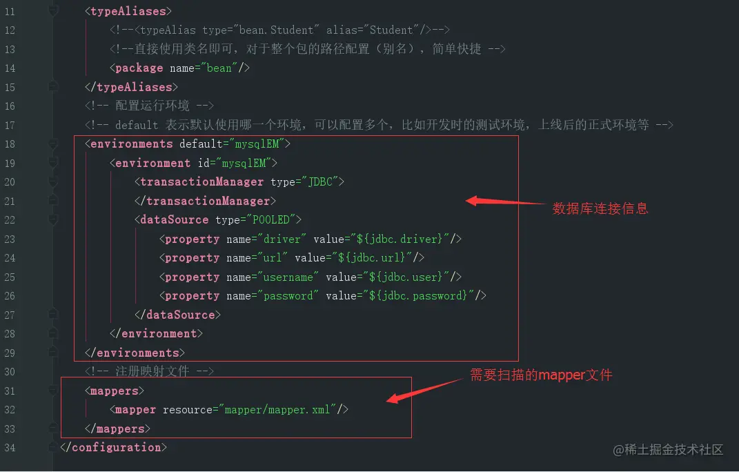 首先主配置文件(Mybatis.xml),在里面配置数据库连接信息,注册需要扫描的mapper文件: