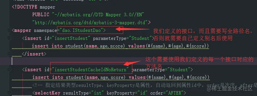 定义mapper文件(namespace是接口的全限定类名):