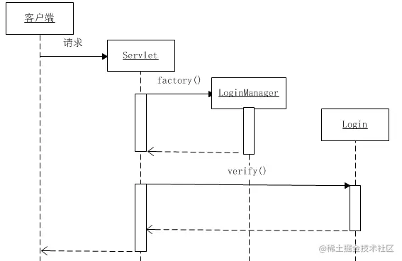 假如不使用简单工厂模式则验证登录Servlet代码如下(假设Test为一个Servlet,变量loginType、name、password表示从客户端传递过来的参数):