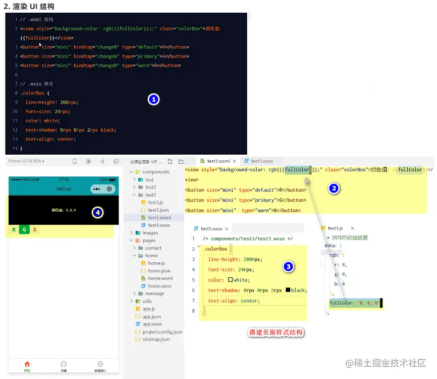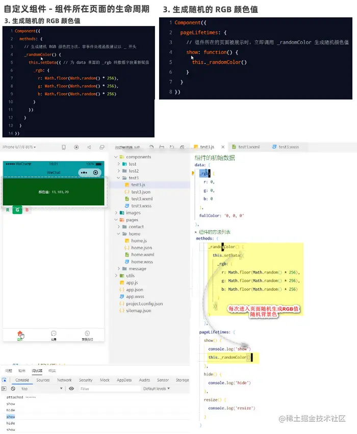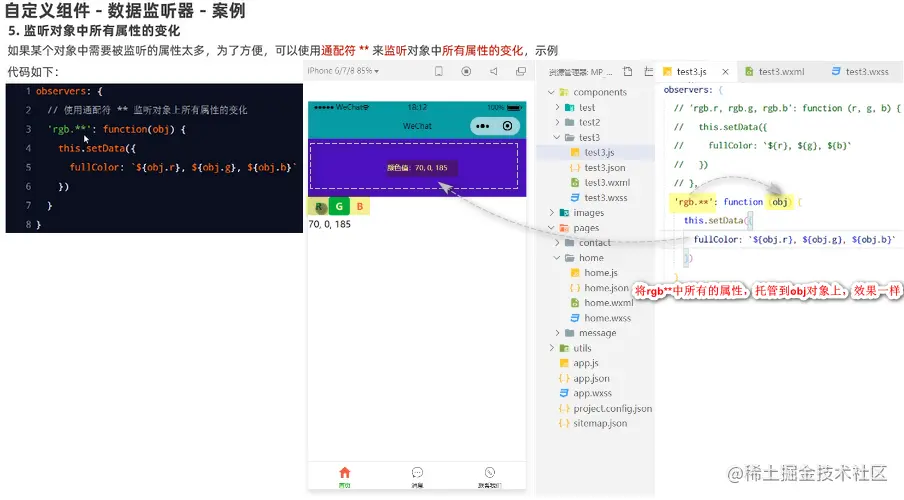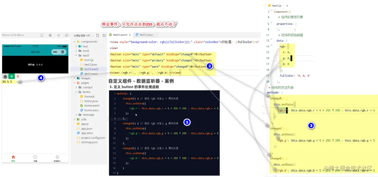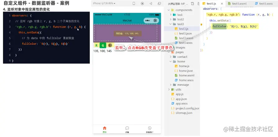 3: 自定义组件 - 数据监听案例:点击RGB按钮,改变盒子颜色