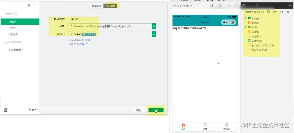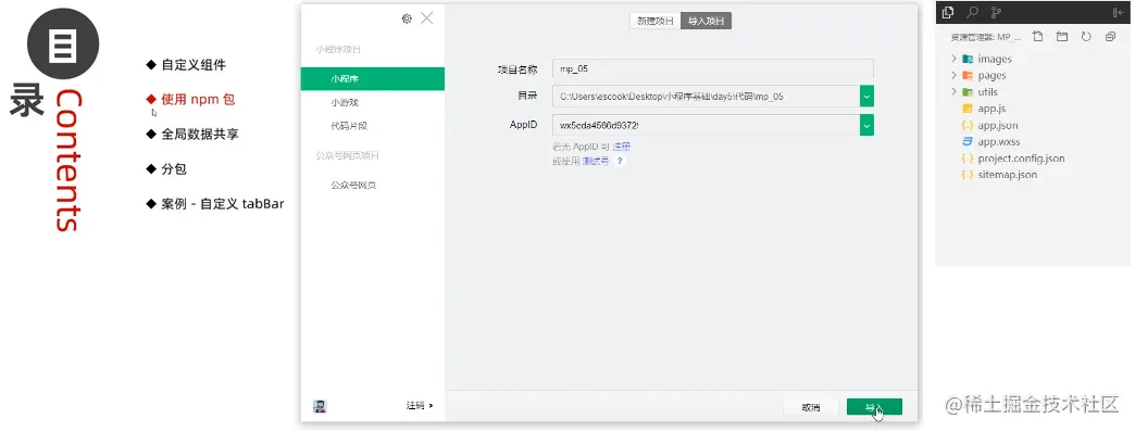 导入需要用到的小程序项目