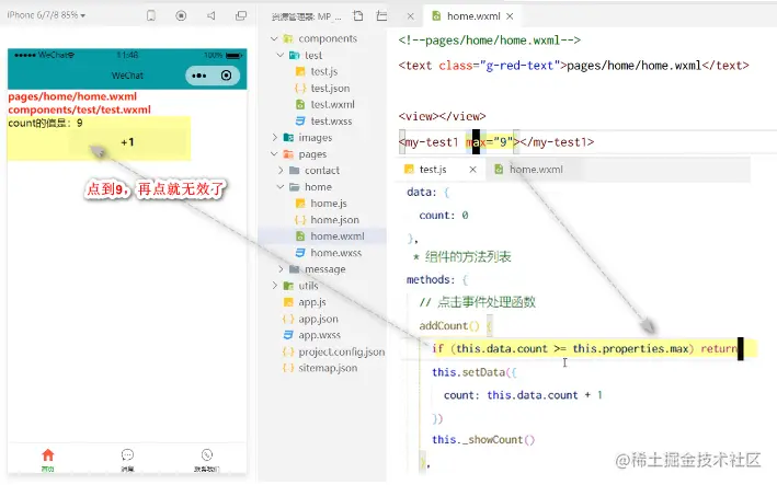 实现子组件的count属性自增+1