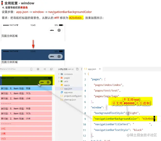 9.2.1:常用的全局配置项以及小程序窗口的组成部分