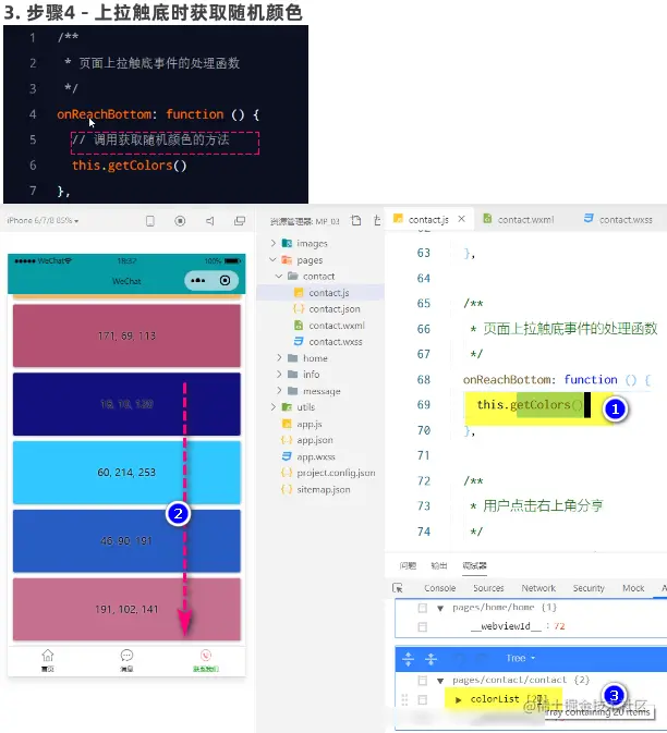 基于以上学习到的上拉和下拉,将请求到的数据,下拉刷新随机生成颜色条