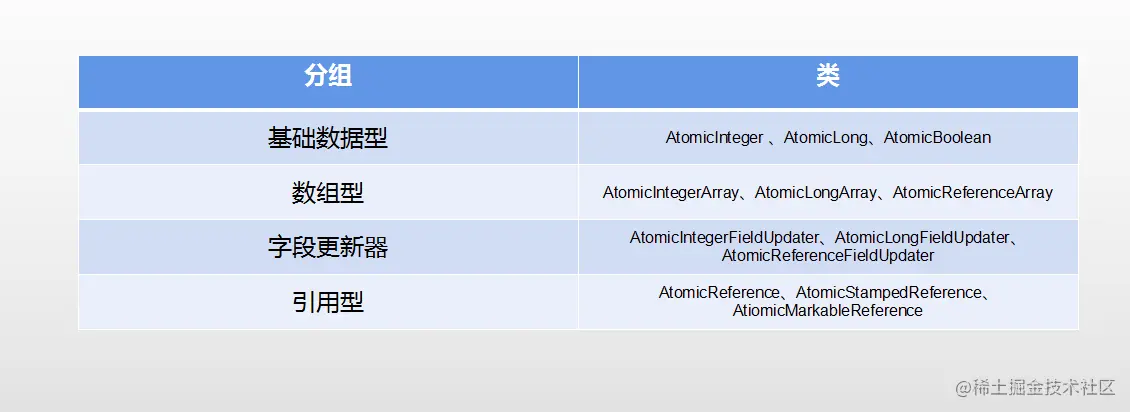 上面的比较并交换的思想的源头是处理器指令的称呼(例如x86处理器中的compxchg)的称呼,在Java中原子变量类是基于CAS实现能够保障线程对共享变量操作时(读-修改-写)的原子性和可见性的一组工具类。原子变量类在某种意义上可以算是Volatile的增强类,我们知道Volatile能够保证可见性,但是无法保证原子性,那么原子变量类就相当在Volatile的基础上增加了原子性。