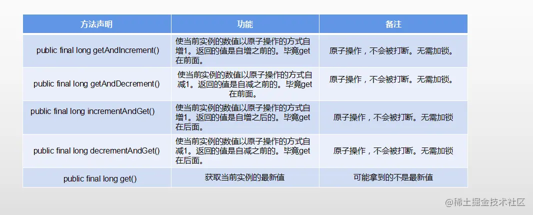我们拿AtomicLong类拿出来大致讲一下,其他类的方法和操作都是类似的: