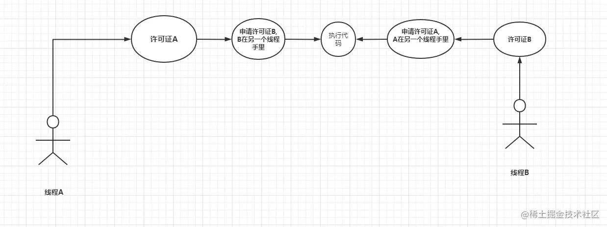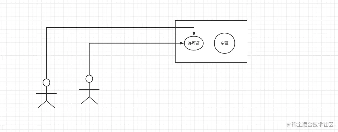 上面我们将锁抽象为一个许可证,那么根据我们上面的模型,我们就需要两个线程,两个许可证。