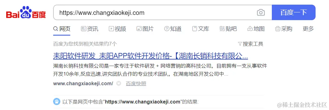 网址1的搜索结果截图如下,从搜索结果我们可以看出,该网址已经被百度收录了。