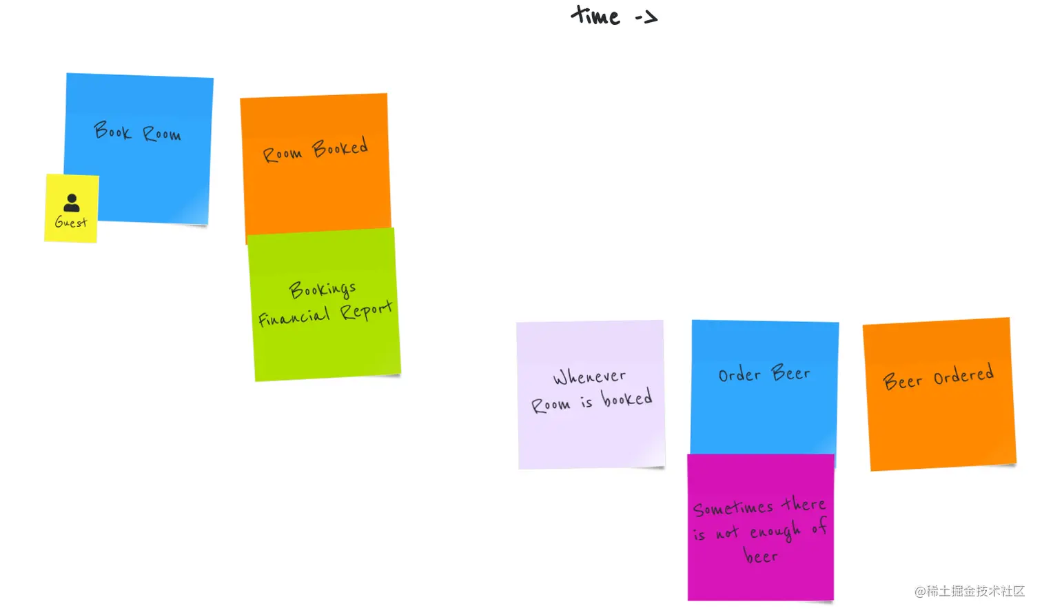 - violet(紫色)便利贴是策略,由事件触发并产生命令